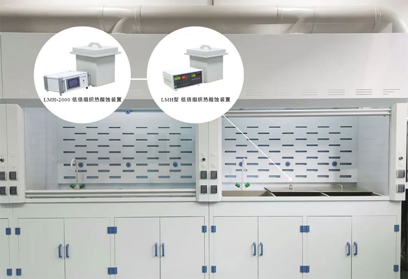 低倍酸蝕裝置內置于排風柜組內,組成一體。