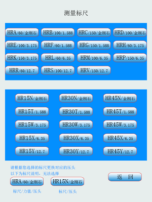 HRA:20-88、HRB:20-100 、HRC:20-70 、HRD:40-77 、HRE:70-100 、HRF:60-100 、HRG:30-94、HRH:80-100、HRK:40-100、HRL:100-120 HRM:85-115、 HRR:114-125 |
