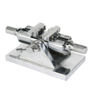 樣品夾具 傾斜夾具用于將不規則樣品夾持住,并在三維方向可調,配合樣品壓平器使用,以使樣品平面與顯微鏡或硬度計光軸垂直。