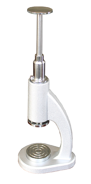 2、 用手按壓壓盤使壓平臺下平面、試樣上平面與壓平試臺上平面平行,然后將試樣固定好松開壓盤,彈簧自動復位。