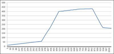 圖2 載荷隨時間變化(X軸單位:1/40秒;Y軸單位:公斤) |