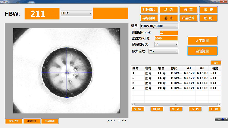 硬度按國標和ASTM轉換成其他硬度;硬度值統計及硬度超出報警