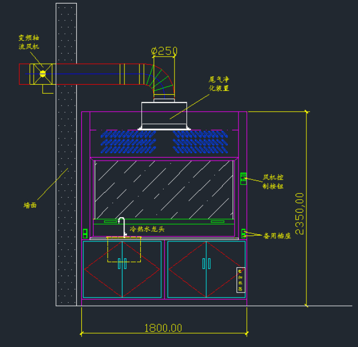 5)排風口徑:250mm;材質:聚丙烯(PP);