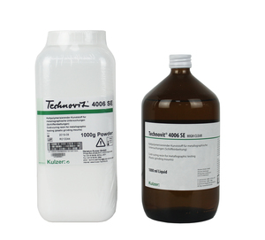 Technovit 4010 透明、常溫聚合、以變性聚酯為基質的粉液二組分樹脂,與壓力鍋配合使用可達到效果。1.3:1重量比粉液混合型常壓常溫固化,工作時間4分鐘以內,固化時間15分鐘。 通用型。