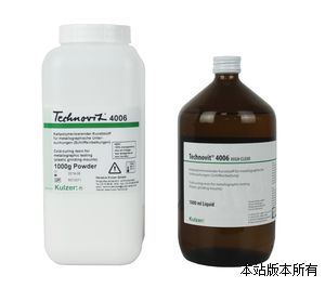 Technovit 4000 2:2:1三組分重量比粉液混合型,工作時間4分鐘,固化時間13分鐘,高密度抗壓型設計。 適用于汽車、軍工、精密機械、冶金、鋼鐵等行業中多孔材料的鑲嵌。